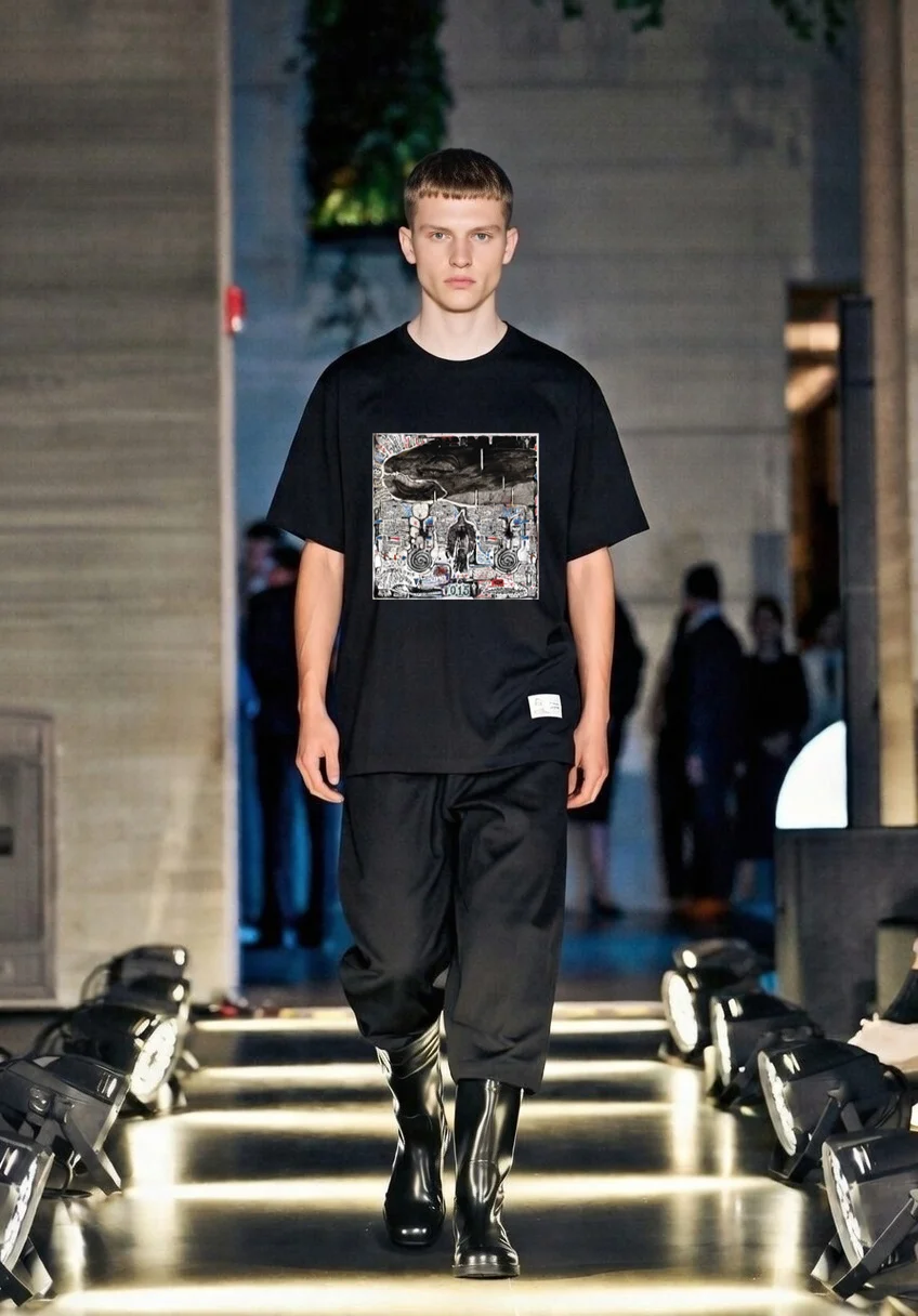 YANG YU Unisex Printed T-shirt  - 4 Recycled Water Bottles -Black