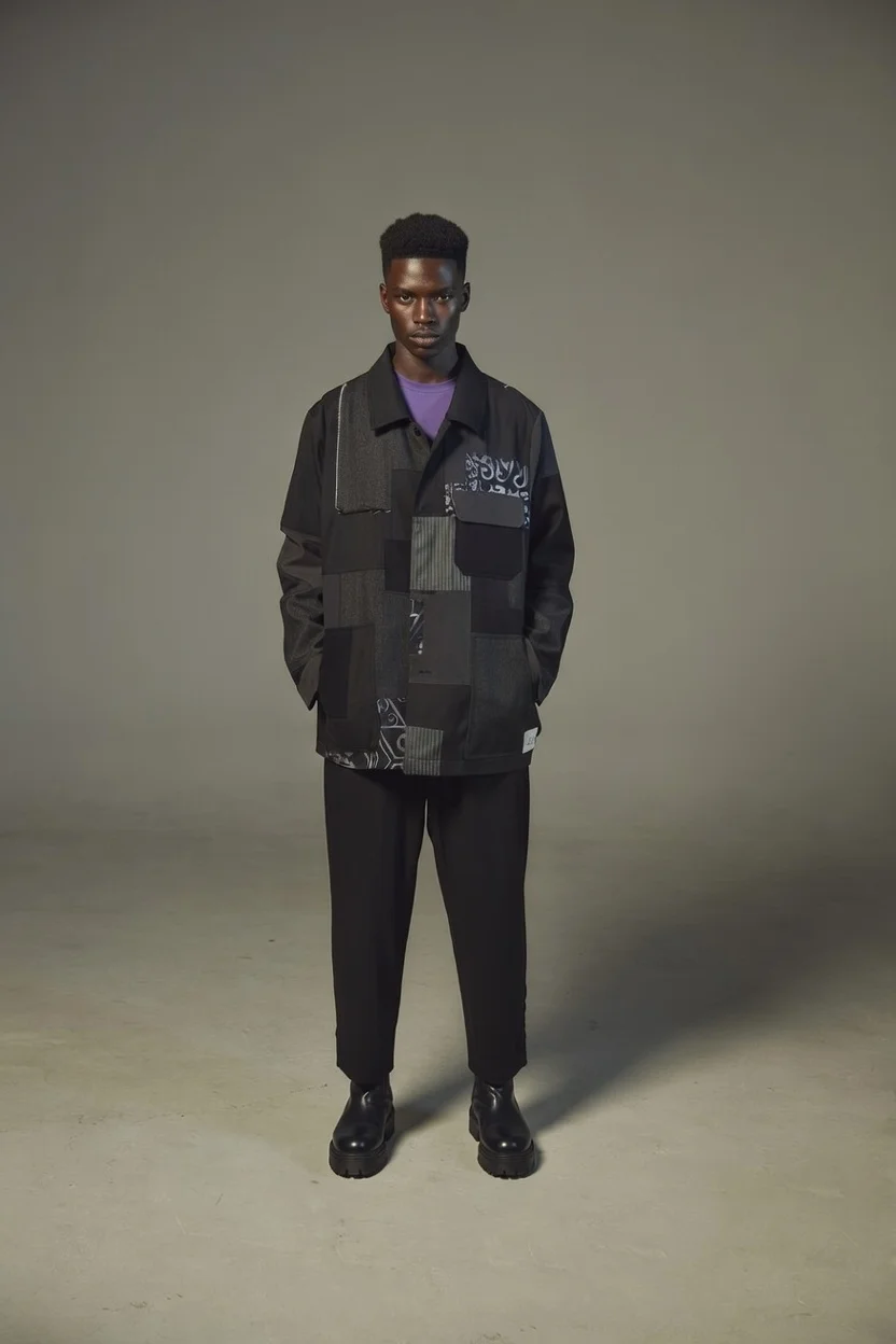 The JUMA Unisex Upcycled Cargo Jacket features a structured silhouette with utility inspired cargo pockets and signature logo detailing. Constructed from upcycled patchwork panels sourced from previous JUMA collections, each piece carries a unique composition of reclaimed fabrics.