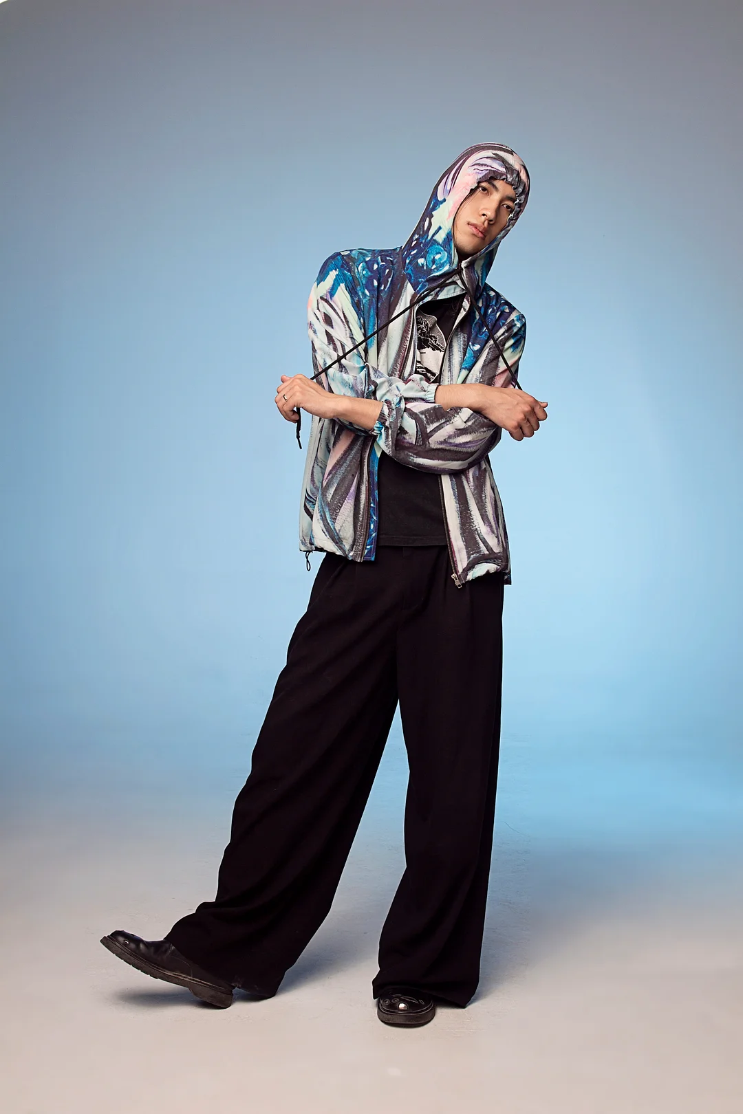 Crafted from 8 recycled water bottles, the NIGEL NOLAN Hooded Anorak features a relaxed silhouette finished with a digitally printed abstract artwork. Designed to merge functional outerwear with expressive surface detail.